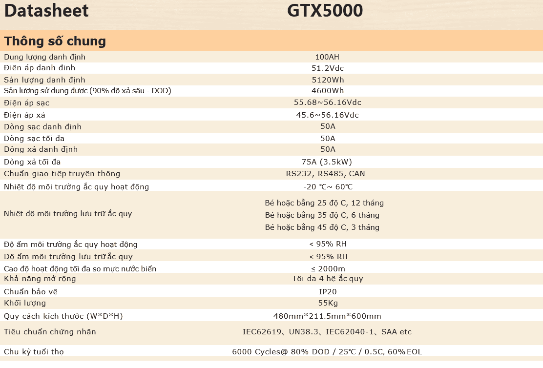 Thông Số Kỹ Thuật Pin lưu trữ Lithium Sofar AMASS STORE BATTERY 48V – 100A (GTX5000)