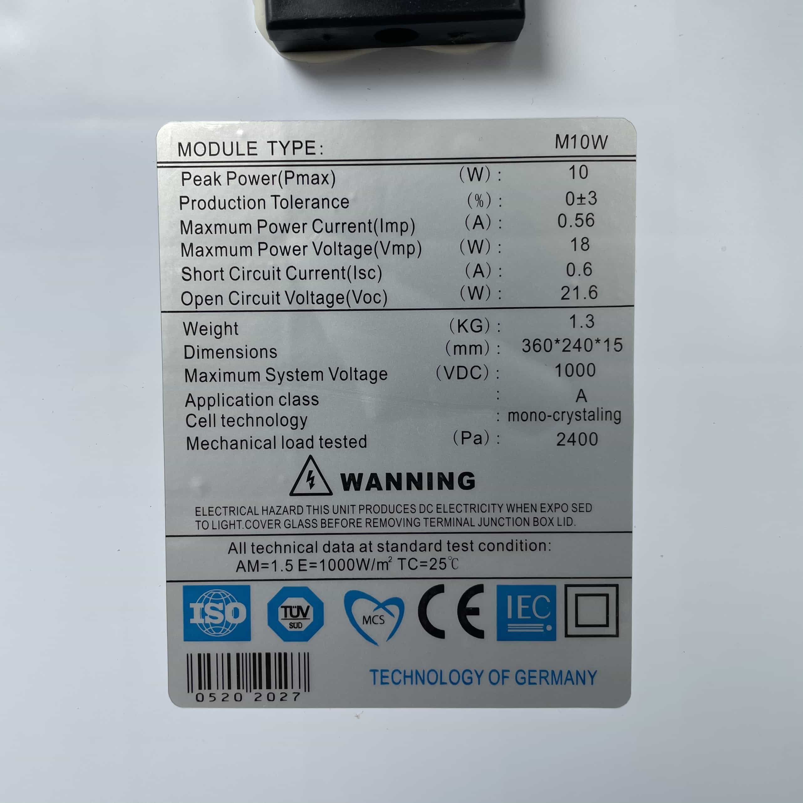 TẤM PIN MẶT TRỜI POLY 10W SOLARCITY