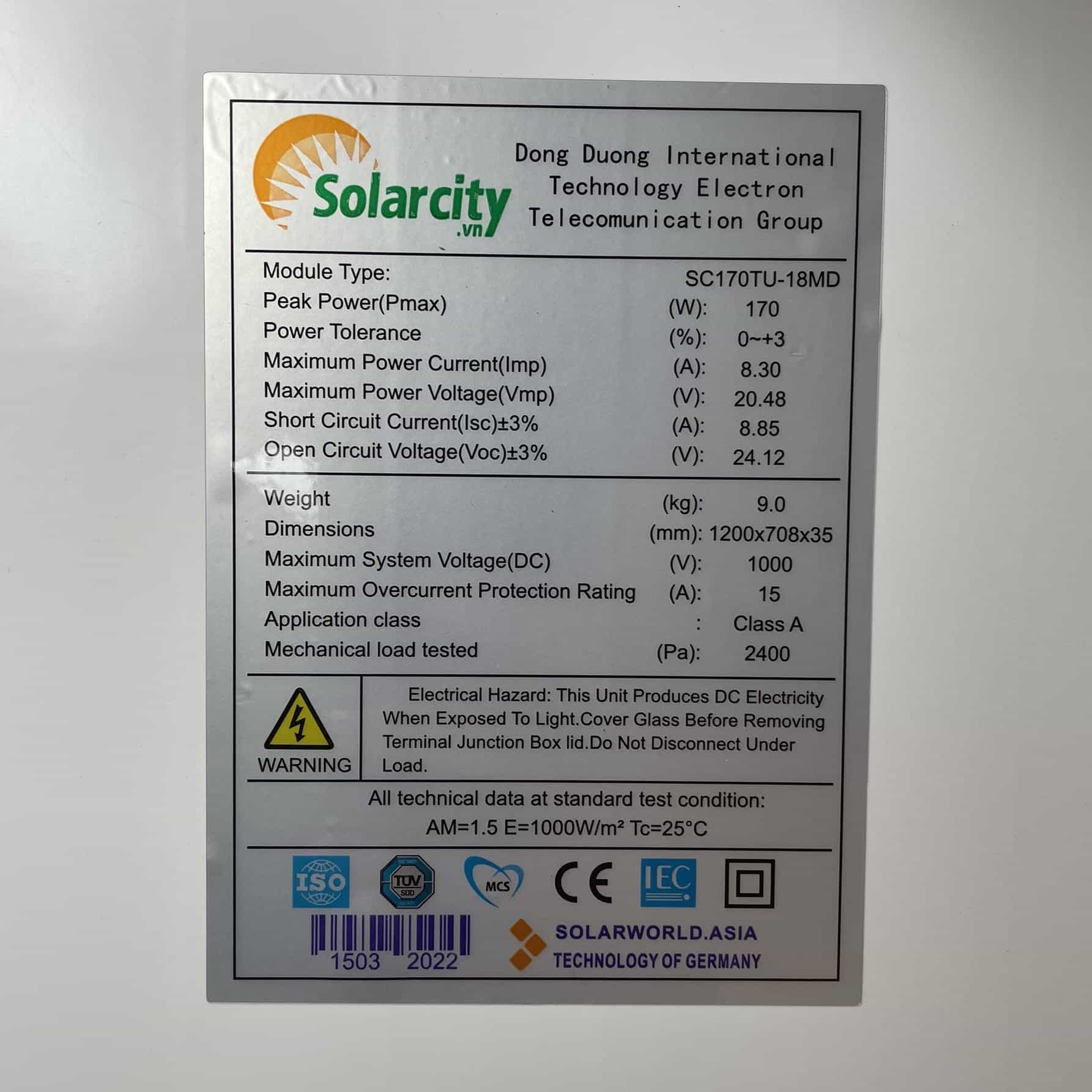 - Biến đổi quang năng hấp thụ từ mặt trời để biến thành điện năng đáp ứng tiêu chuẩn chất lượng nghiêm ngặt của IEC, UL, CE, TUV , ETL, PV Cycle, MCS, BBA, Safety class.